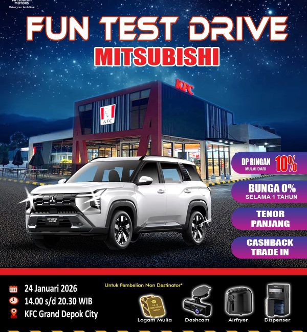 Nikmati pengalaman Fun Test Drive Mitsubishi dengan berbagai penawaran spesial dan keuntungan menarik hanya di event Mitsubishi Srikandi Margonda Depok.