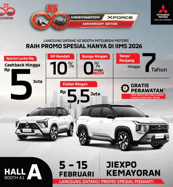Mitsubishi Motors Indonesia menghadirkan Promo Spesial IIMS 2026 dalam rangka 55th Anniversary Mitsubishi Motors.